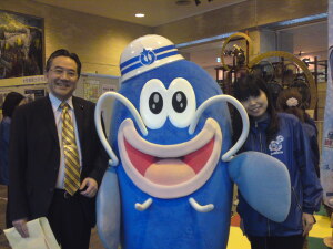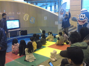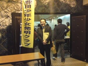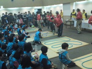 来賓紹介の後ホールで行われていた愛知県の防災キャラバンと豊田少年少女発明クラブを見学しました。