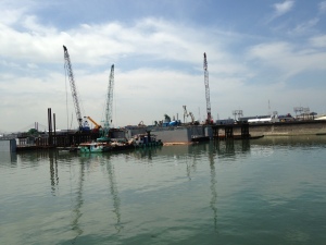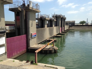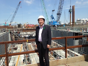 平成25年5月31日(金) 日光川水系改修促進期成同盟会(会長久野飛島村村長)で日光川水閘門改修事業の現場見学会に顧問として参加しました。尾張西部・海部地域を水害から守る要の水閘門も築50年が経過し老朽化が著しく改修が急務となっていますが、関係各位の長年のご努力により平成19年度に国の採択を受け、漸く本年度から水閘門の本体工事に着しました。