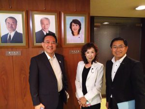 平成29年5月25日 5月臨時愛知県議会が開会され正副議長や委員会配属などが決定し、遅くなりましたが議会としての新年度がスタートしました。開会前には30年表彰を受け肖像画を飾られた中村友美議員と写真撮影です。