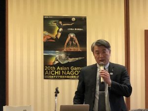平成29年12月19日 愛知県議会と名古屋市会の第20回アジア競技大会推進議員連盟の合同勉強会が県議会議事堂大会議室で開催されました。本県と同様に競技大会への立候補を検討していた福岡県から人づくり・県民生活スポーツ振興課長中平氏を講師にお迎えし、スポーツ人を育てる~福岡県タレント発掘事業を通して見えてきたスポーツの未来像~と題して講演頂きました。