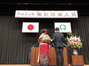 平成30年1月7日 穏やかな晴天の中、稲沢市成人式が晴れやかに挙行されました。司会は新成人代表の佐藤さんと山本さんが務め、誓いの言葉は三國さんと飯田さんが行いました。今年の新成人は平成9年4月2日から平成10年4月1日生まれの1,501人(男743人女758人)の皆さんです。輝ける未来が訪れることをご祈念申し上げます。