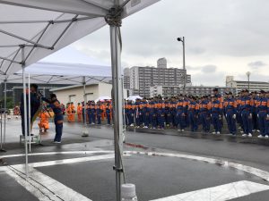 平成30年5月13日 第14回稲沢市消防操法大会が雨天にもかかわらず士気の高い11分団とガーベラーズ他が集合し立派に実施されました。最終組の第1分団の時にはかなり雨風が強くなり訓練場も水が浮く状況でしたが怯むことなく力強くこれまでの訓練の成果を披露して頂きました。