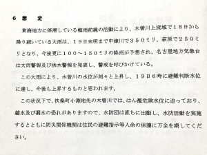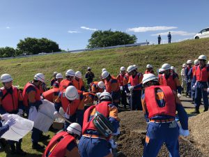 平成30年5月19日 愛知県尾張水害予防組合(管理者加藤稲沢市長)、愛知県一宮建設事務所、扶桑町の主催で平成30年度の水防防災訓練が木曽川扶桑緑地公園で実施されました。消防団員が兼務する水防団の皆さんには先週の操法大会に引続き早朝から訓練に励んで頂き感謝です。会場には早朝から尾張水防組合議員の稲沢市議会の皆さんも激励、視察にご臨席、鈴木は途中で愛西市で開催の愛知県植樹祭に向かわせて頂きました。