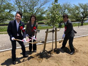 平成30年5月19日 第70回全国植樹祭1年前記念イベントと冠して平成30年度愛知県植樹祭が日永愛西市長はじめ関係者の皆様のお骨折りで盛大に開催されました。今年度も愛知県緑化樹木共進会の農林水産大臣賞は植木のまち稲沢市から河村氏が受賞されました。第70回全国植樹祭に向けて苗木のスクールステイで稲沢高校(ヒトツバタゴ)はじめ6校が代表者記念植樹で使用する苗木の育成を担当します。また大会イメージソング「と・も・に」があいち音楽大使の岡村孝子さんから初披露されました。
