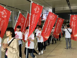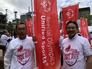 h平成30年5月20日 2018年 第7回 スペシャルオリンピックス日本夏季ナショナルゲーム・愛知のユニファイドリレー トーチランがライオンズクラブ国際協会334-A地区の主催で一宮市で開催されました。鈴木も木全さんはじめ稲沢ライオンズクラブ(佐藤会長)のメンバーと参加しました。大会は9月に行われますが県は7月にヘルプマークを導入します。