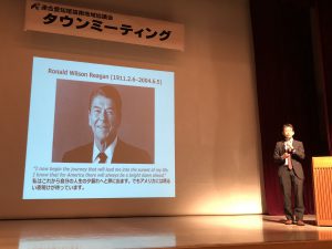 平成30年10月3日 連合愛知尾張南地協(代表:鈴木忠豊田合成労組委員長)タウンミーティングが多くの参加者のなか開催されました。テーマは認知症について学ぼう〜身近かにせまる認知症〜助け合う地域社会をめざして!です。第1部は名大勝野教授の認知症の最新医療と予防、第2部は認知症サポーターキャラバン事業の取り組みと展望で共に有意義なお話を拝聴しました。