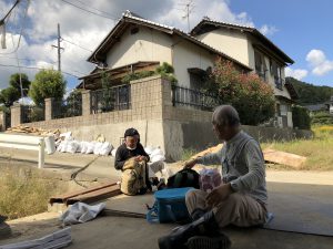 平成30年10月14日 稲沢市社会福祉協議会から防災ボランティア稲沢に紹介があった一宮市社会福祉協議会が主催する西日本豪雨災害ボランティアに参加しました。精鋭15人は13日午前にバスで出発しましたが、鈴木は会議等があり新幹線で追いかけ夜に合流し、今朝からの活動に参加しました。お伺いしたお宅ではバールを使ったフローリングの床剥がしや床下の泥出しを行いました。活動は15日午前中まで行い午後バスで帰る予定です。