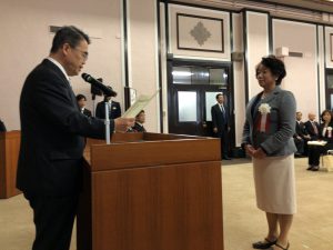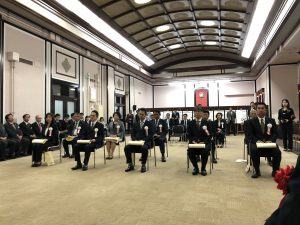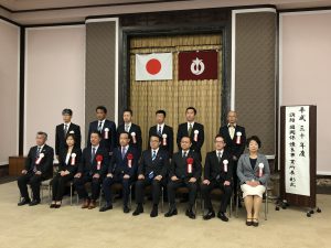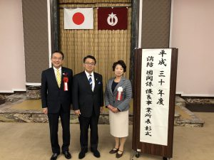 平成30年11月12日 平成30年度消防団関係優良事業所表彰式が愛知県庁本庁舎6階正庁で開催され、稲沢市の愛知文教女子短期大学はじめ12団体の皆さんが、地元自治体の消防団活動に対する協力が他の規範となる特に優秀な事業所として大村知事から感謝状を授与されました。