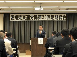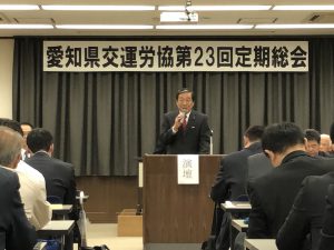 平成30年12月3日 12月定例愛知県議会が開会した午後、愛知県交運労協第23回定期総会が開催され出席させて頂きました。大久保議長はじめ立憲民主から赤松副議長、国民民主から古川県連代表、新政あいちから塚本代表などご挨拶がありました。