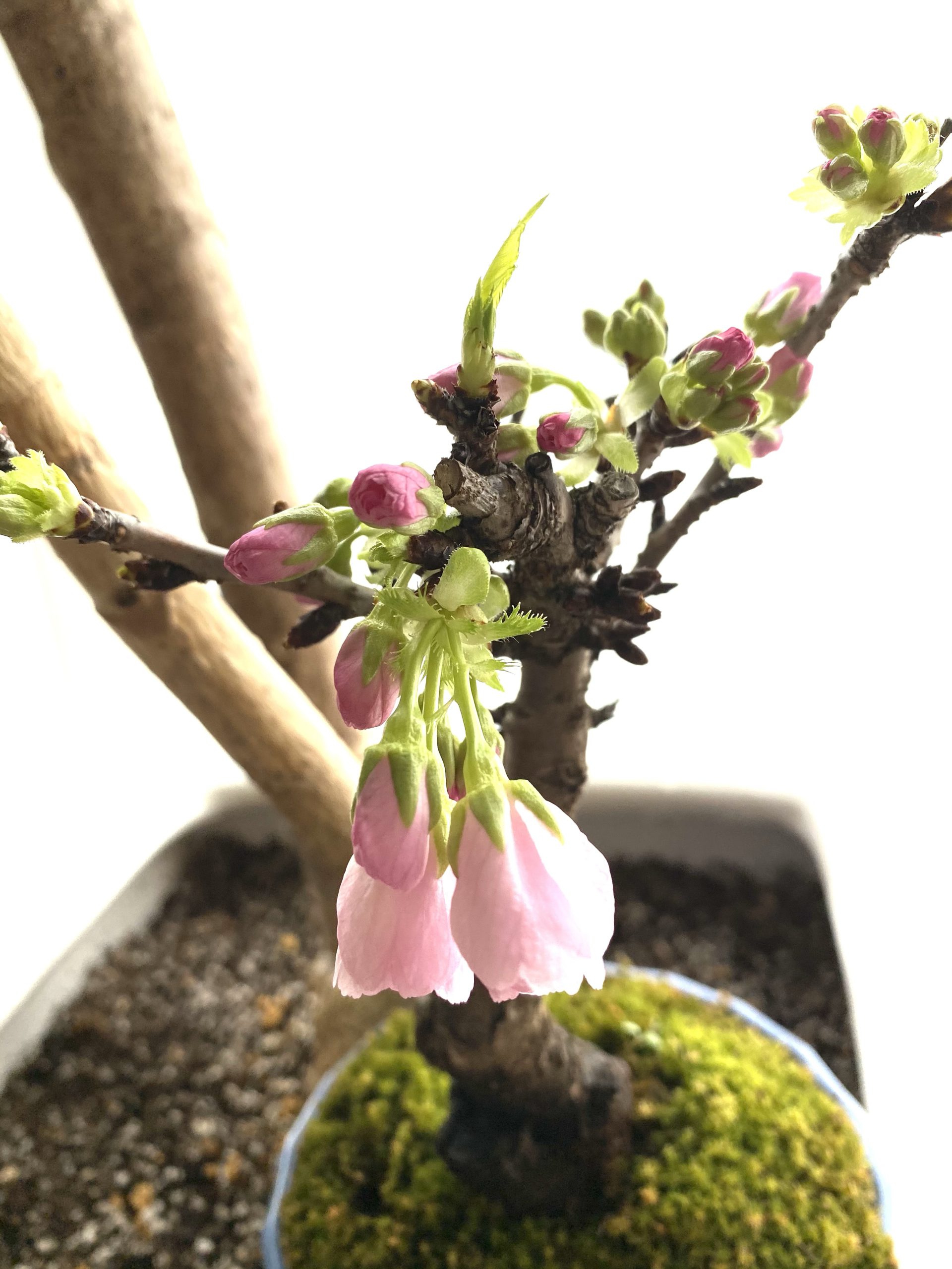 令和3年2月27日 先日フローリストほうかえんで購入した鉢植えの可愛い桜の蕾があっという間にほころびました。
