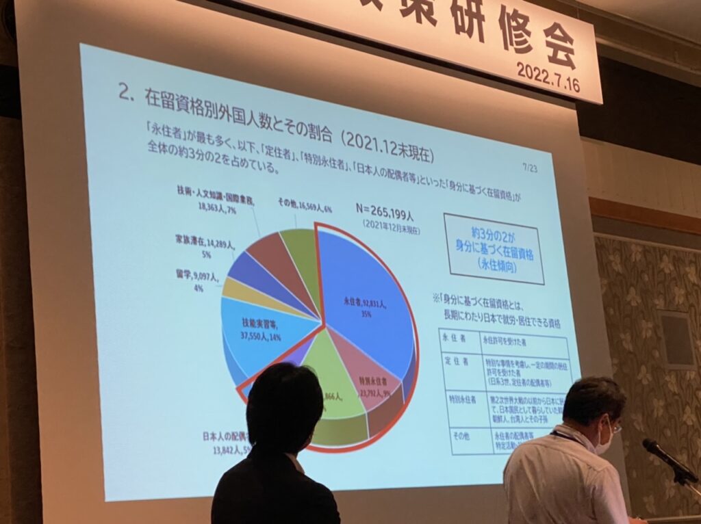 令和4年7月16日 新政あいち総会に続いて連合愛知政策研修会が開催され新政あいち県議団の議連の取組の報告の機会を頂きました。鈴木から7議連の紹介と活動方針を述べさせて頂いた後、中小企業振興議連について朝倉事務局長から、多文化共生議連について森井会長・小木曽事務局長から、子ども・若者議連は谷口会長・日比事務局長・大嶽議員から活動報告をしました。趣旨説明と司会進行、講評を頂いたのは連合愛知中島事務局長です。