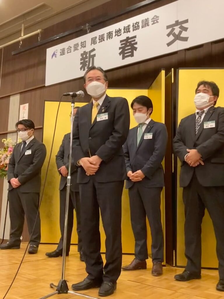 令和5年1月28日 2023年連合愛知尾張南地域協議会(後藤靖代表:豊田合成労働組合委員長)の新春交礼会が連合愛知可知会長、加藤稲沢市長ほか関係自治体の首長の皆さんなどをお迎えして開催されました。