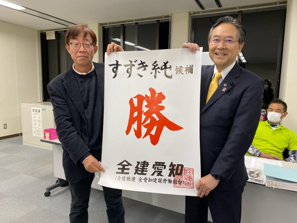 令和5年2月11日 全建愛知一宮支部の定例会議が開かれ石黒支部長と檄ビラの写真を撮らせて頂きました。