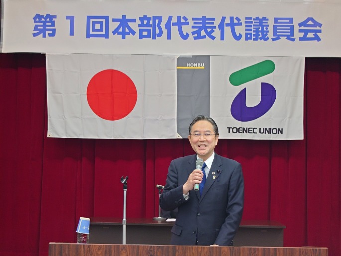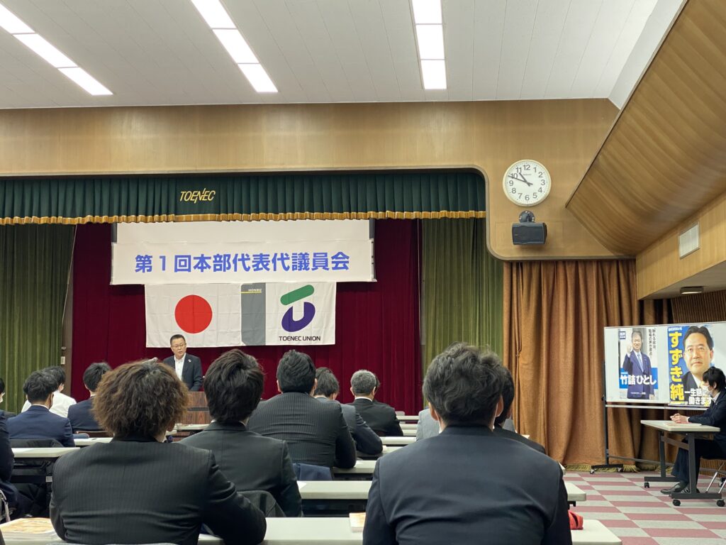 令和5年2月18日 トーエネック労組の第1回本部代表代議員会が本社講堂で開催され竹詰参議院議員の国政報告に続き、鈴木も愛知、三重、岐阜、静岡、長野の組合役員の皆さんの前で県政報告をさせて頂きました。
