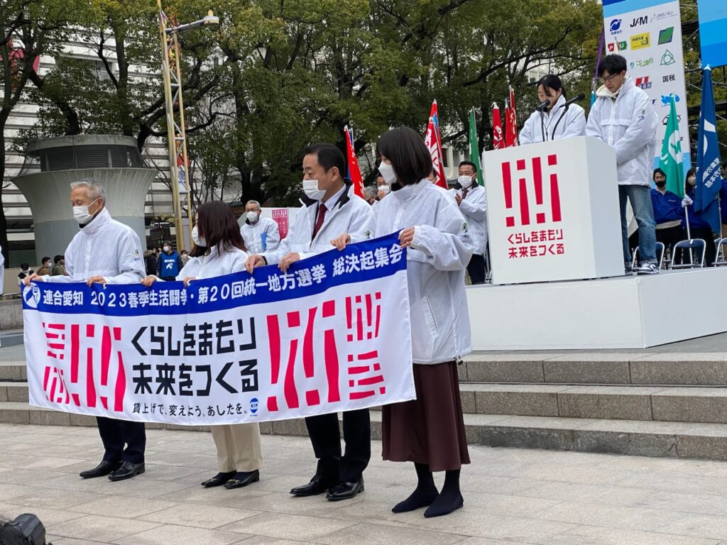 令和5年3月5日 連合愛知主催の2023春季生活闘争総決起集会で第20回統一地方選挙総決起集会を開催して頂き、5千人を超える組合の皆様の前で4月の統一地方選挙の愛知県議会、名古屋市議会、市町村議会の推薦候補予定者を紹介して頂きました。