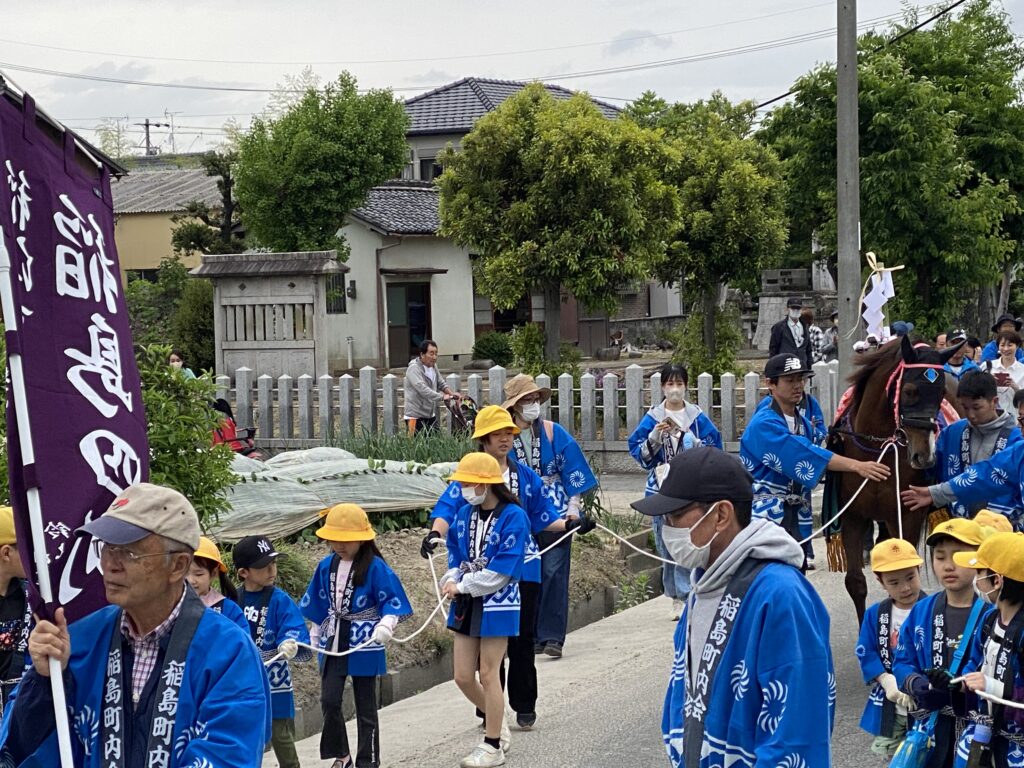 令和6年5月6日 尾張大國霊神社・国府宮様の例祭が各地域の区長様はじめ多くの関係の皆様ご参集のもと斎行されました。午後には梅酒盛神事(馬祭り)も行われ地元稲島4町からも代表の江越の子ども達が元気に参加しました。