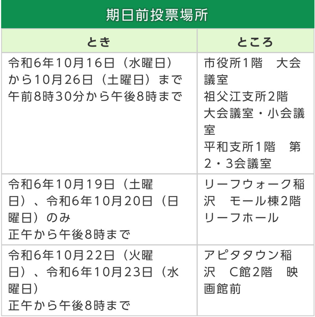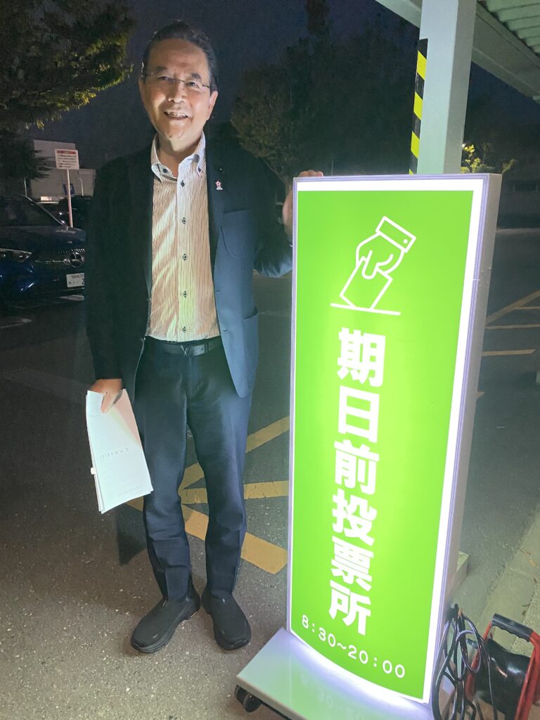令和6年10月22日 第50回衆議院総選挙の期日前投票に行ってきました。市役所や祖父江支所、平和支所で午前8時半から午後8時まで開設しています。