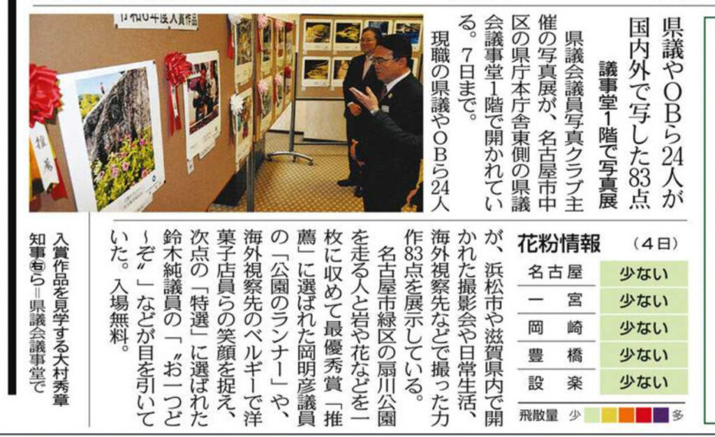 令和7年3月4日 久し振りに県議会議員写真クラブ(神戸洋美会長)の作品展が中日新聞さんに掲載されました。審査員は元中日写真協会理事西澤広さんです。