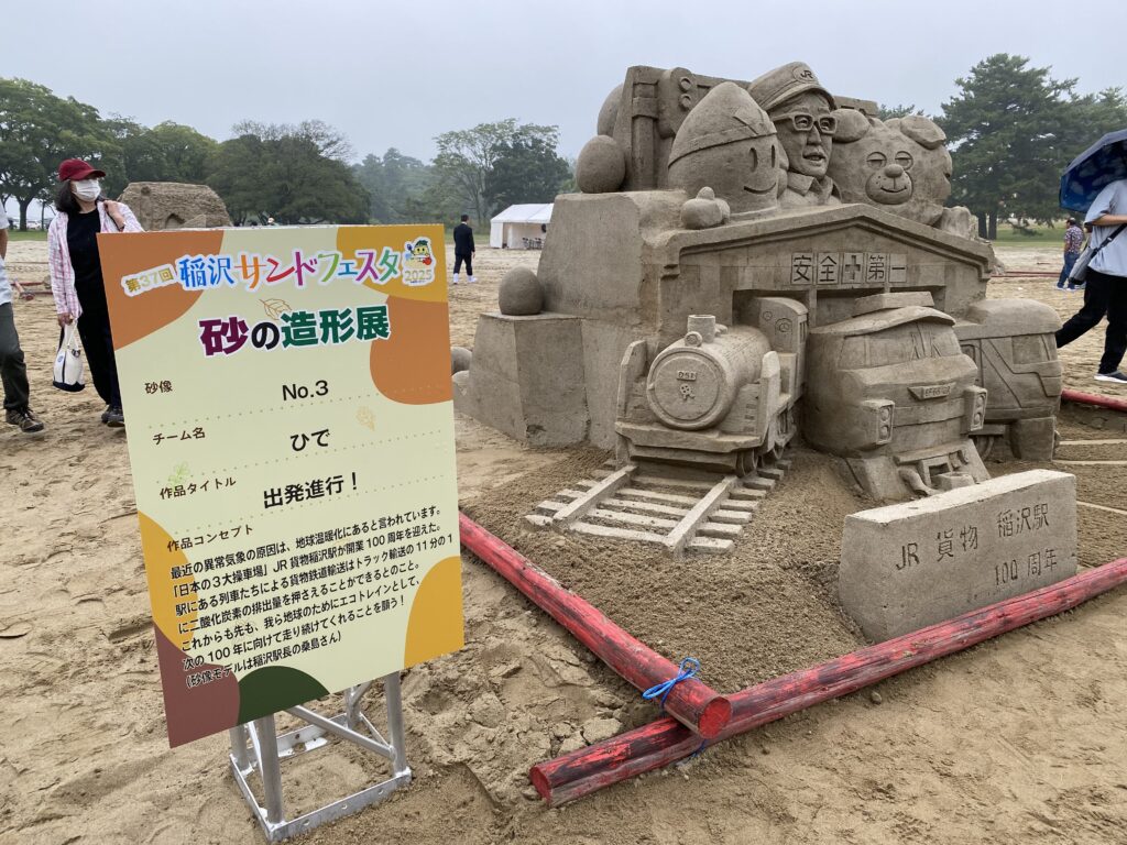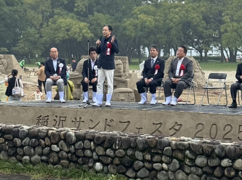 令和7年10月11日 国営、県営、市営の三公園が連なるサリオパーク祖父江で第37回稲沢サンドフェスタ2025の開会式があり出席しました。今回のテーマはJR貨物の稲沢駅が開業100周年という大きな節目を迎えたことからテーマは過去から未来へ~次の100年への出発点~と題してどれも素晴らしい砂像が展示されています。期間は11月3日までですので是非ご来場ください。