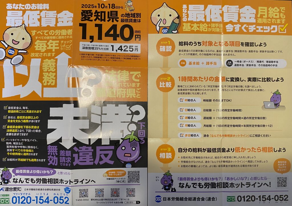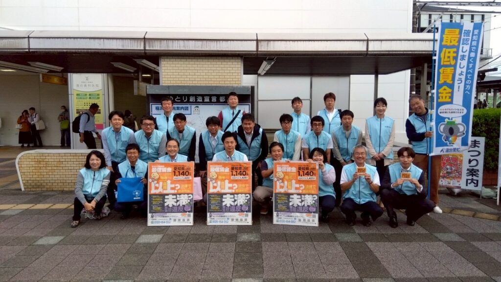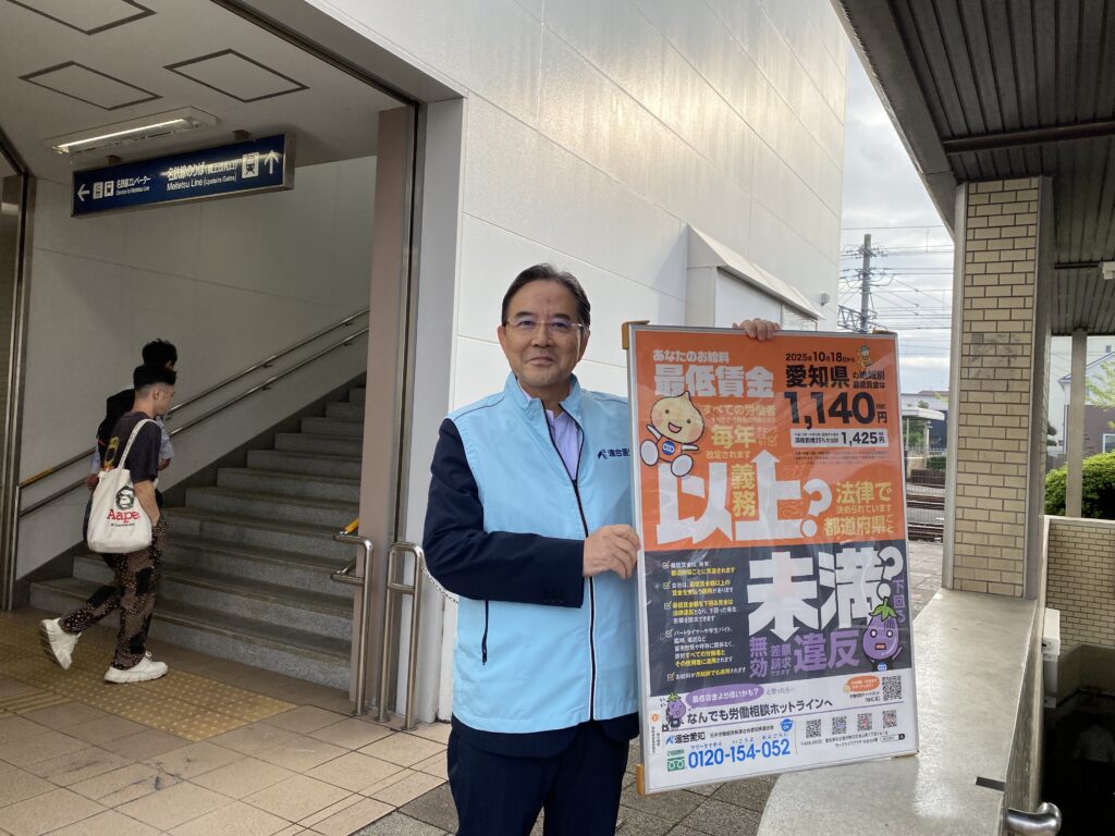 令和7年10月15日 10月18日から愛知県の最低賃金が1,140円に改定されることから毎年行われる連合愛知尾張南地協の街頭宣伝活動に参加しました。引き上げ額は63円と昨年度の50円に続き過去最大を更新しました。物価上昇を上回る賃金上昇となるように経営者側には生産効率向上への施設整備などに積極的に取り組むとともに中小小規模事業所に対する行政(国)側の経営支援の充実が必要です。今日は議論を尽くした9月議会の閉会日です。