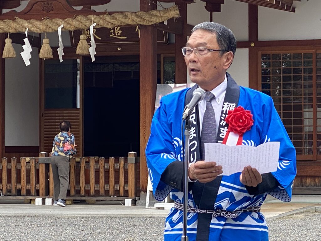 令和7年10月18日 稲沢まつり(実行委員会会長:池戸賢治商工会議所会頭)が開幕しました。尾張大國霊神社 国府宮様拝殿で祈願祭(鈴木も玉串奉奠させて頂き稲沢まつりの安全と盛況を祈願しました)を執り行い、開場式は連合婦人会の皆さんの「稲沢音頭」で幕開け、愛知啓成高校のブラスバンド部にも演奏頂きました。国府宮神社の境内・参道のほか名古屋文理大学文化フォーラム(稲沢市民会館)でも開催されています。また本日18日のみですが、JR貨物稲沢駅開業100周年記念事業や稲沢市民病院まつり、消防ひろば等も開催されました。