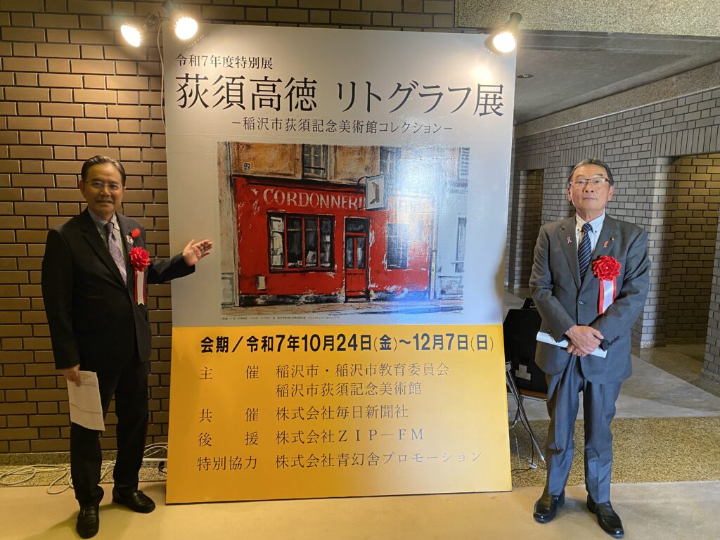 令和7年10月23日 令和7年度特別展 荻須高徳 リトグラフ展-稲沢市荻須記念美術館コレクション-の開会式が行われ、明日10月24日から12月7日まで約120点を前後期に分けてリトグラフ展が開催されます。荻須画伯が晩年の約20年間に制作したリトグラフ全166点の7割以上の作品が鑑賞できます。共催は荻須画伯に縁のある毎日新聞社、後援は昨年に続きZIP-FM、特別協力として素敵な図録を制作してくれた青幻舎です。