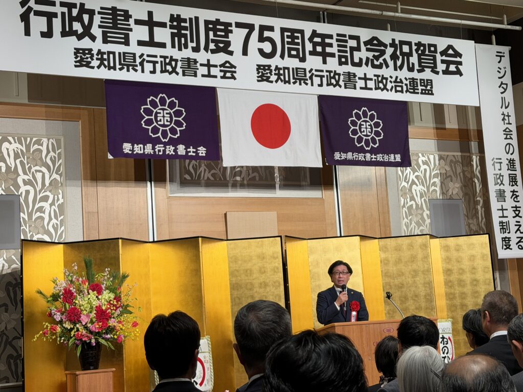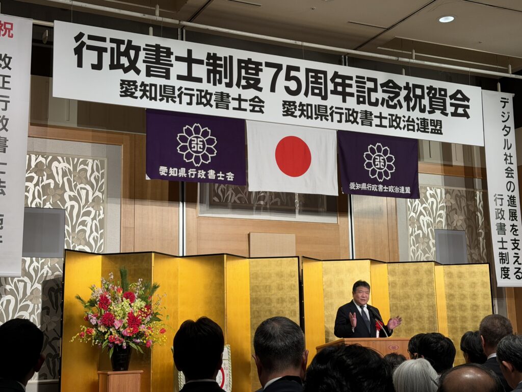 令和8年1月13日 愛知県行政書士会の行政書士制度75周年記念祝賀会が竹田勲会長のもと盛大に挙行されました。改正行政書士法が施行されデジタル社会の進展を支える先生方の社会に果たす役割と期待は益々大きくなる中、より一層のご尽力をお願いします。