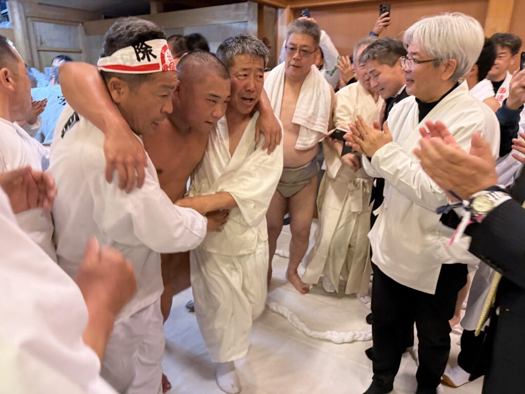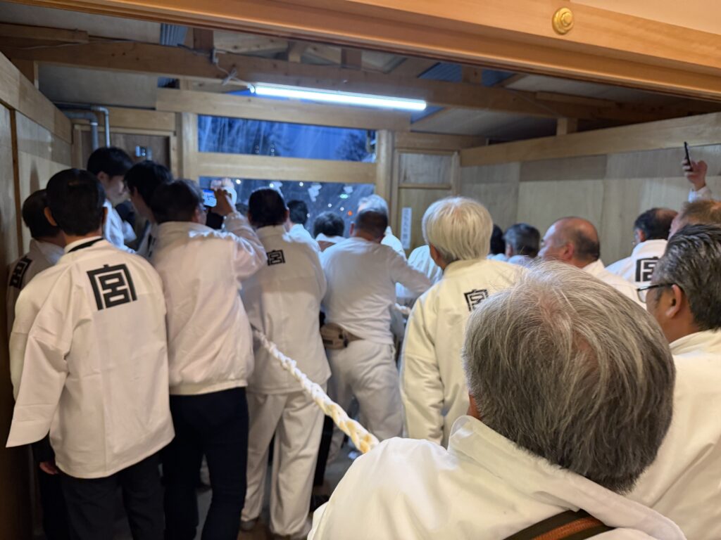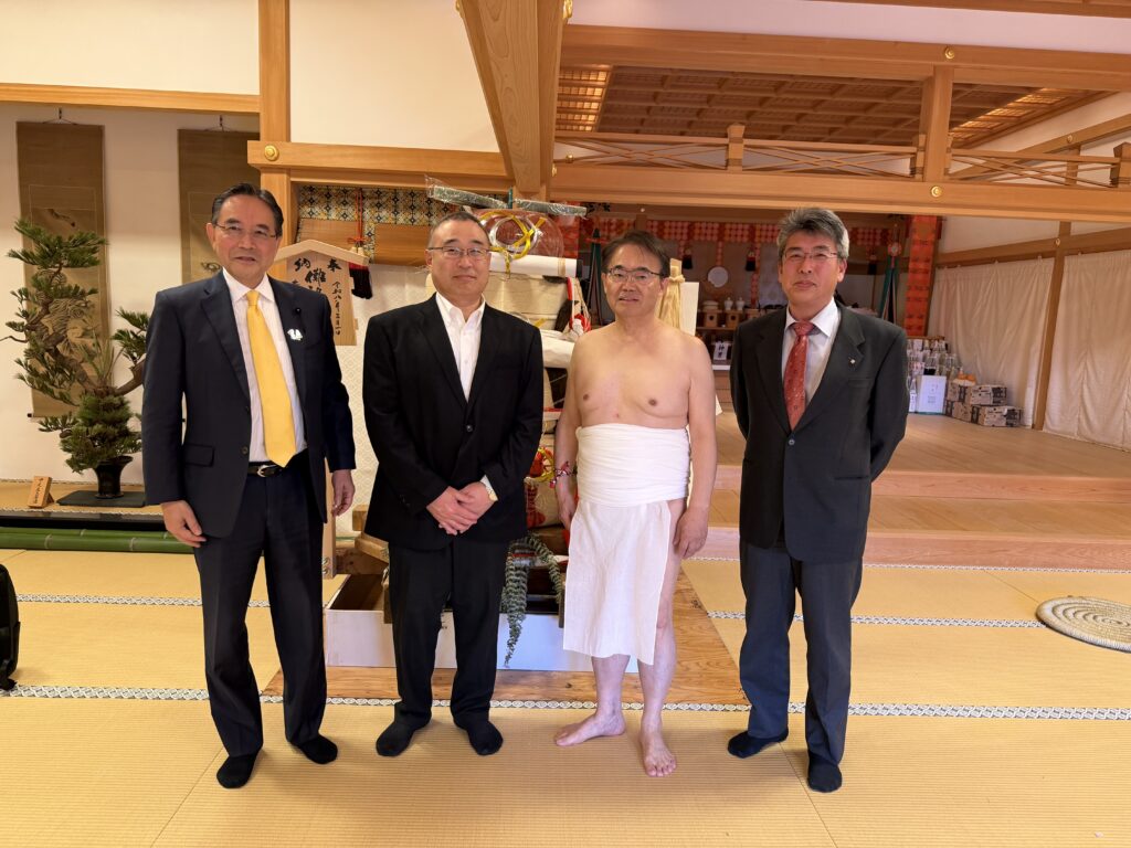 令和8年3月1日 尾張大國霊神社の儺追神事 国府宮はだか祭の日を迎えました。クライマックスは当日深夜に行われる夜儺追神事ですが、華は神男が裸男に揉まれるはだか祭です。今年は日曜日で天候も良く大変多くの方にご来場頂き(裸男は一万人)大村知事も下帯姿になって裸男を激励されました。神男の木村勇樹さんは鉄鉾会の皆さんにお守り頂き無事に大役を果たされました。