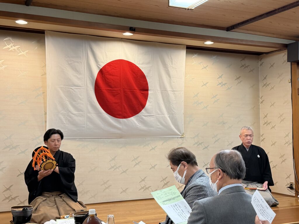 令和8年3月17日 鈴木が所属する稲沢ライオンズクラブと稲沢緑ライオンズクラブの皆さんとの合同例会が緑さんの設営で行われ千葉県調査の帰りに出席しました。客演として名古屋市芸術奨励賞伝統芸能(能楽)を受賞された能楽師橋本宰様、能楽師(能楽小鼓方幸清流)船戸昭弘様による高砂待謡が上演され楽しく参加させて頂きました。