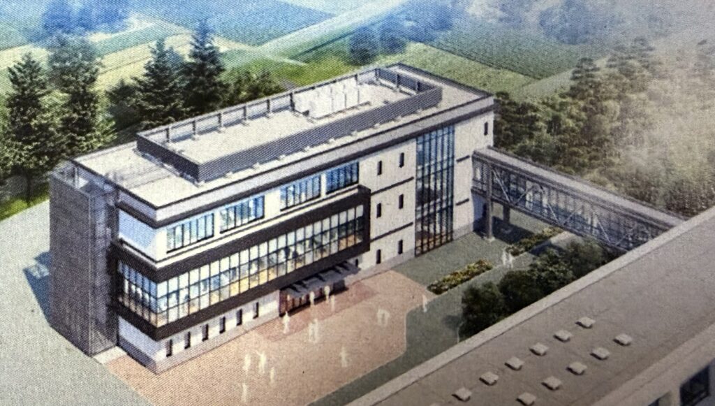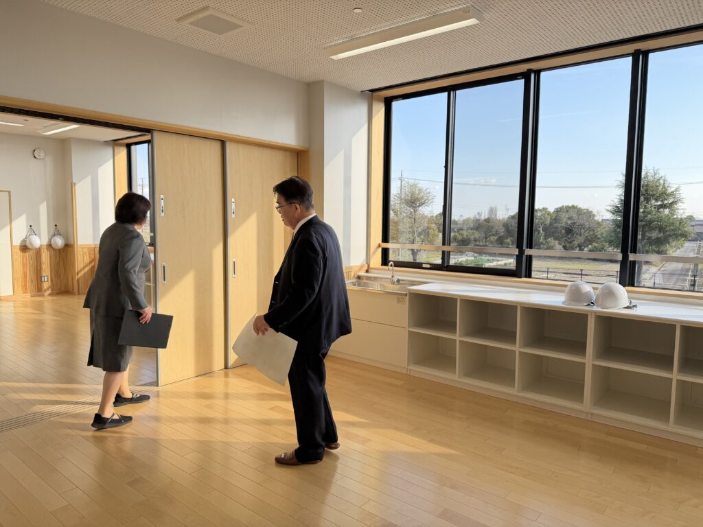 令和8年3月23日 埋蔵文化財調査のため半年ほど遅れましたがこの4月に共用開始の準備が整い大村知事が来校され関係議員として見学会に出席しました。2014年に開校した当時は267人48学級でしたが現在は347人60学級と子ども達が予想以上に増加したため今回校舎を増築しました。新校舎は既存校舎と渡り廊下で繋がっており20教室と職員室等で高等部が入ります。