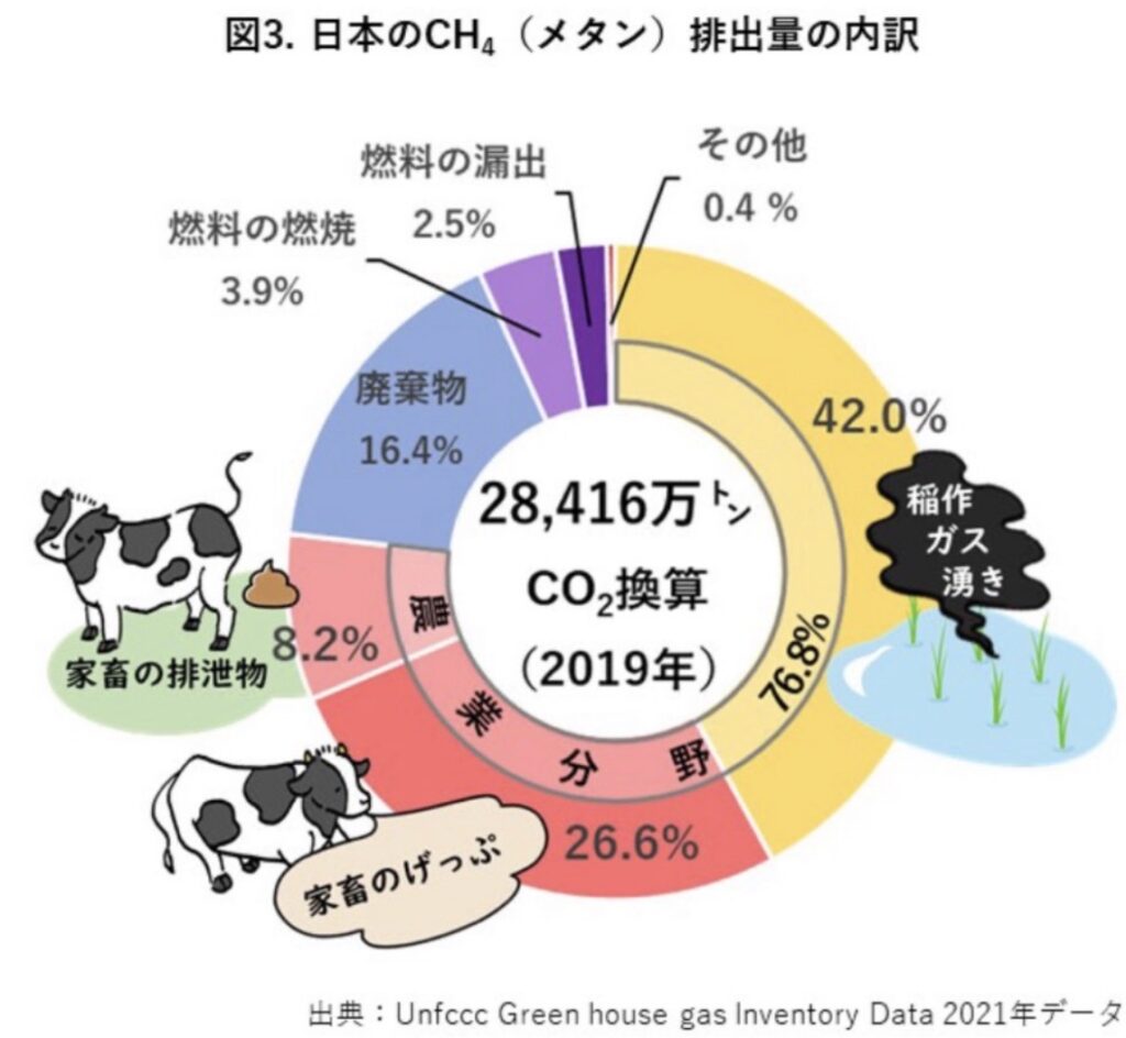 牛のげっぷ由来のメタンガス(CH4)削減へ