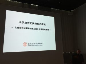 平成29年9月5日 総務県民委員会の県外調査2日目は、金沢21世紀美術館を調査しました。昨年度の来館者数は255万人を超え、平成16年10月からの累計では2000万人を突破するなど地方都市の美術館でありながら国内トップクラスの集客力です。平成29年度の予算は8億4千万円、観覧料やグッズ販売で半分を賄い美術館としては収支的にも優れており、金沢市の負担は4億円です。