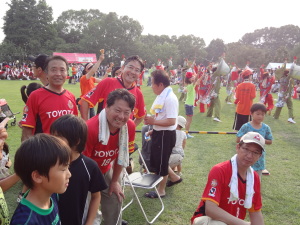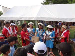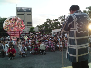 JC式典の合間を縫って、サマーフェスタへいわへ。田島平和町商工会会長をはじめ皆さんにお骨折りをいただいた、青森県黒石市の『ねぷた』が会場中央に鎮座していました。玉田黒石市副市長さんのご挨拶が長引いて・・・JCの祝賀会開会ぎりぎりの戻りとなってしまいました。