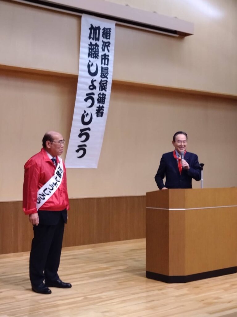 令和6年11月17日 11月10日に告示された稲沢市長選が執行(投開票)され、加藤じょうじろう候補が三選を果たしました。後援会長をお勤め頂いた笠原稲沢市医師会長、六鹿選対本部長はじめ24名の稲沢市議の皆さんの一致団結したパワー、そして何より加藤候補をお支え頂く地元後援会の皆様に感謝です。課題山積ですが70の約束の加藤市長の3期目に期待です。