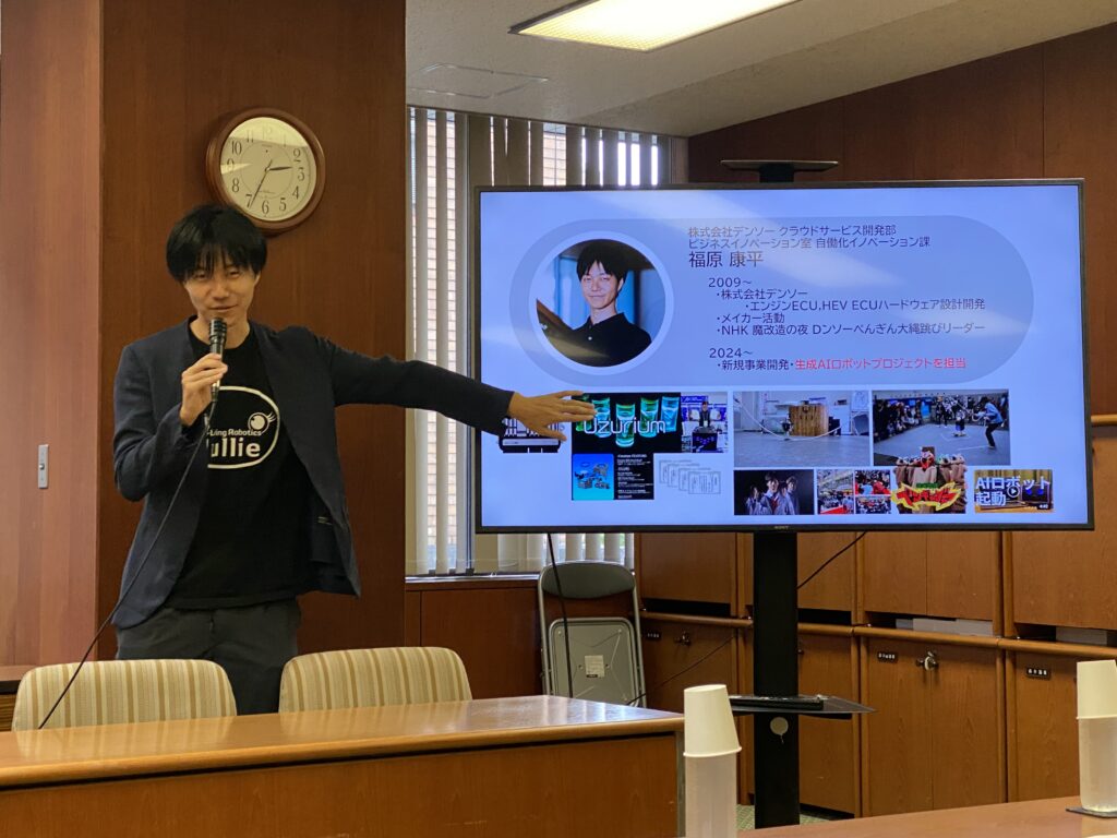 令和7年10月10日 あいち民主県議団の研修会で「共生するAIロボット「Jullie(ジュリー)」の育成から紐解く新たな価値創造」と題して、株式会社デンソー クラウドサービス開発部ビジネスイノベーション室自動化イノベーション課 福原康平課長に講演を頂きました。アジャイルプロセス(スピーディーかつ柔軟に開発を進める手法)や付加価値から新価値の創造、共感から行動変容など自分からすると次のフェーズ(レベル)の取組の話でした。特に美しい所作などIT・AI×N領域での共創、人らしさ(Art)×テクノロジー(Tech)を再定義する文化フェス に取り組みたいなど技術を超えた領域の世界に時代が動いていることに驚愕しました。ヒト×AI×ロボット…共に働く未来のリアル