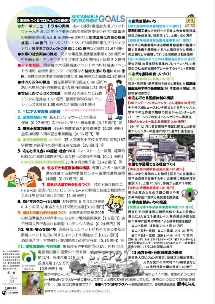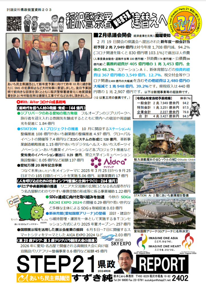 令和6年2月16日 少し早いですが国府宮はだか祭が22日にある関係でSTEP21の県政市政報告の街宣活動を木全市議と国府宮のロータリーをお借りして行いました。今月は愛知県の新年度当初予算について重点的に取り上げました。