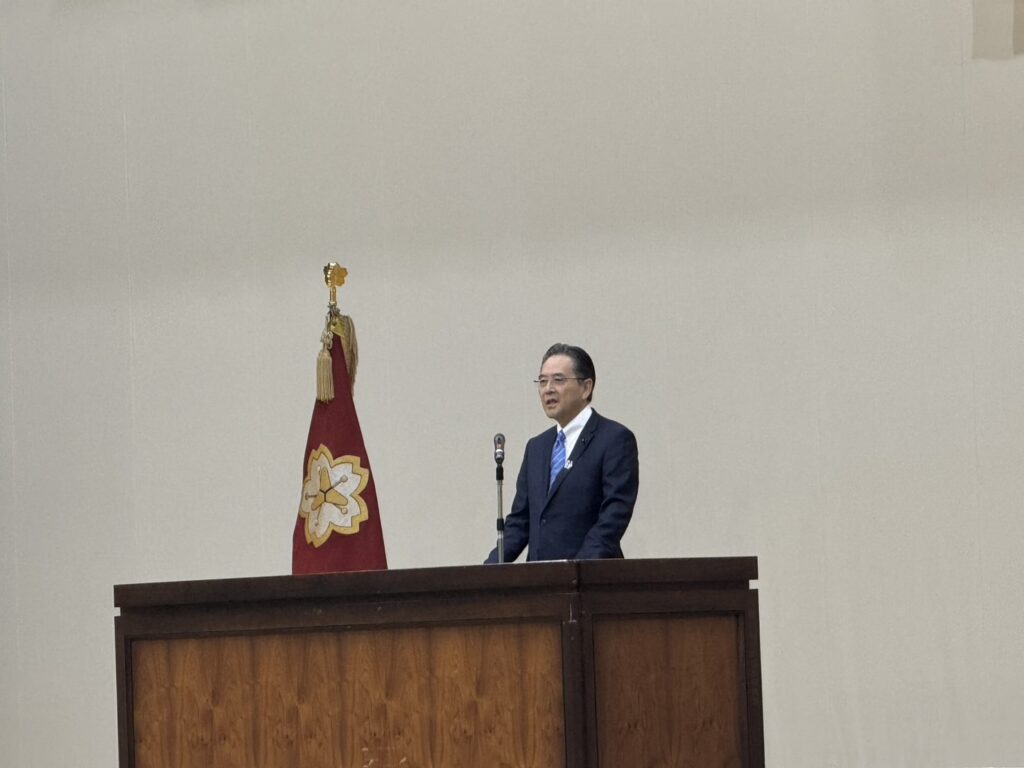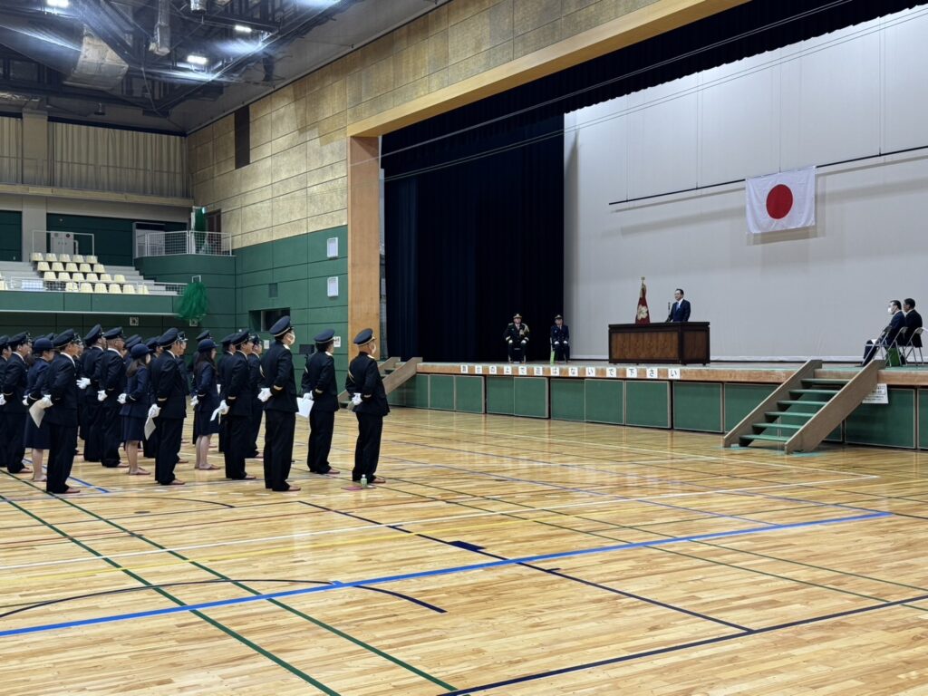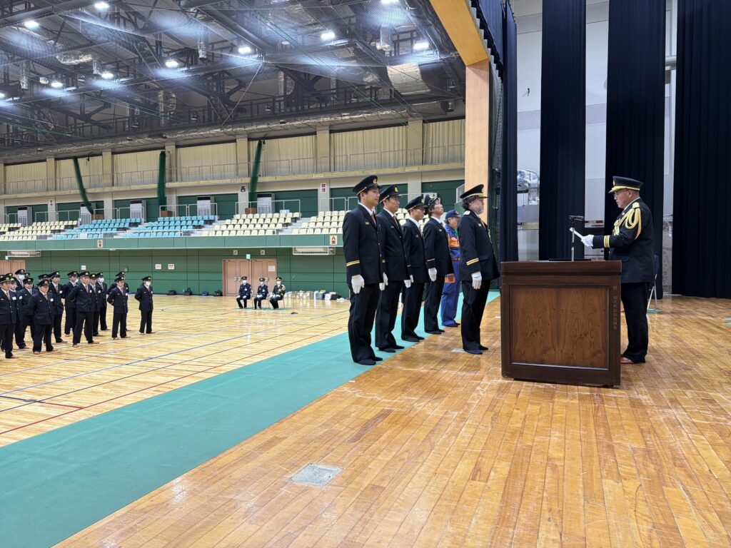 令和8年4月5日 令和8年度稲沢市消防団任命式が小沢実前団長の後を受け新団長に就任された林晃弘団長のもと厳粛な中挙行され山本新副団長はじめ基本団員93名支援団員12名の総計105名が任命されました。「自分たちの地域は自分たちで守る」という崇高な精神のもと消防団員の勇気と献身そして日々の鍛錬が稲沢市の安全・安心を支えていることに感謝しエールを送りました。
