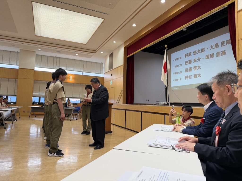 令和8年4月12日 日本ボーイスカウト愛知連盟尾張西地区第17回年次総会が開催されボーイスカウト振興愛知県議会議員懇談会所属議員として一宮選出の平松議員と出席しました。地元議員を代表して鈴木から菊章受賞のスカウトをお祝い
