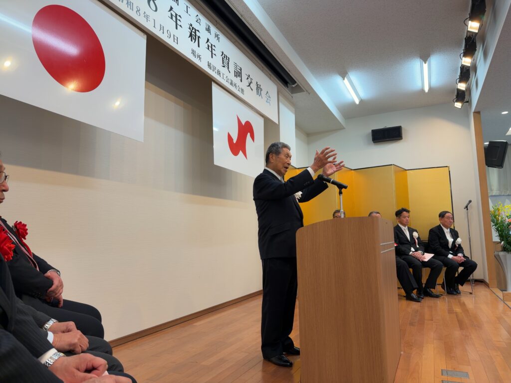 令和8年1月9日 稲沢商工会議所(池戸会頭)の令和8年新年賀詞交歓会が多くの会員の皆さんがご参集して盛大に開催されました。鈴木純は中締めで2026年は21世紀の第二四半世紀のスタートで25年後は2050年の節目となること